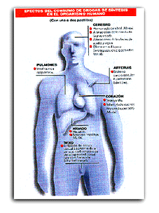 Aunque estas sustancias se cree que no crean adicción, es necesario aumentar progresivamente la dosis para conseguir el mismo efecto, algo muy parecido a la adicción. Otro gran peligro es la fabricación casera de drogas, a partir de plantas. Esto tiene una gran aceptación, debido al éxito que tiene actualmente todo lo hecho con ingredientes naturales. Se extraen drogas de plantas como estramonio, amapolas y mandrágora, incluso estas plantas se transforman de forma casera, lo que puede ser muy peligroso. Los consecuencias de estas drogas, y otras, como el polvo de ángel, MDA o droga del amor, o mezclas de anfetaminas con cocaína son múltiples: ![]() Cerebro: