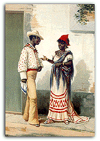 Visita al Museo de Bellas Artes de Santander Un comentario sobre una exposición temporal de arte de CUBA El Museo Nacional de Bellas Artes de La Habana ha realizado en nuestro país durante el año pasado, en el que se cumplió el centenario de 1898, varias exposiciones sobre los dibujos y cuadros de Landaluze. Intenta descubrirnos a este peculiar artista bilbaíno y cubano por adopción popular , poco conocido entre nosotros pero sobre todo poco conocido entre sus gentes, quien muestra en numerosas ocasiones a la isla de Cuba el afecto tan grande que siente hacia ella. Nació en la ciudad de Bilbao en 1830, pero vivió en La Habana parte de su vida hasta que en 1888 murió en la Perla del Caribe. Pintor e ilustrador de profesión, trabajó en algunas revistas, pero como realmente se consagró fue al retratar la vida y las gentes cubanas antes de la Independencia de este país. Captó muy bien, de una forma paradójica , las tradiciones, costumbres y los personajes típicos de sectores marginales de la sociedad colonial. Aunque destacan sus graciosas caricaturas, mediante las que se permita hacer una crítica de los excesos de la moda del momento, en lo que realmente se va a especializar es en litografías, una técnica que finalizados los cuadros parecen acuarela. Los dibujos de tipo popular constituyen para Landaluze el primer acercamiento a la realidad cubana, en lo que se va a basar fundamentalmente su obra de carácter costumbrista. Una de sus cromolitografías, en la que me voy a centrar más, simboliza a "Los Negros Curros". Se ven representados con colores fuertes, alegres pero sobre todo vistosos los trajes de un chico y una chica de color, probablemente cubanos. Estos personajes vivían en el manglar (formación vegetal característica de las regiones litorales de la región tropical) en el barrio de Jesús María, que en la primera mitad del siglo se consideraba el hampa de La Habana. Landaluze deja muy patente en sus obras la vitalidad, el colorido, las astucias, la alegría, las costumbres, las burlas,... capta con mucha precisión la luz tropical, capta el momento justo en el que se desarrolla la acción real y luego lo plasma en sus bocetos tal y como lo ve, como lo siente y lo vive. Los prejuicios, las supersticiones, las pasiones del pueblo cubano tan lejos de nosotros pero a la vez tan cerca, sean blancos o negros. No es necesario compararle con otro artista de su mismo género para saber que es bueno, muy bueno sobre todo por el realismo y la emoción que siempre expresa en sus trabajos. Esta labor que muestra su acercamiento personal a las clases populares de la isla, reflejado en las expresiones de los personajes, que están llenos de vida, que se mueven, que sienten,... Su mirada sensible e inteligente es la llave maestra para presentar dibujos elegantes y minuciosos, quizás con un acusado abuso de los perfiles y la rigidez en ocasiones con que pinta a la figura humana. Pero esto se ve compensado con las expresiones de la cara, la sonrisa insinuante de la mulata, en el caso de "Los Negros Curros" y la serenidad con que el tabaquero la mira. Si observamos los trajes que visten los personajes nos damos cuenta de que tienen cierto parecido con los trajes típicos andaluces españoles. A lo mejor uno de los motivos de este enorme parecido es la cercanía entre sí de ambos pueblos, cercanía que no es de carácter geográfico sino que es una cercanía en cuanto a cultura o incluso de carácter espiritual, o simplemente sea una forma de mostrarnos por parte del autor la simpatía que sentía hacia su pueblo de adopción y hacia sus gentes con quienes logró identificarse completamente. La obra de Landaluze no tiene como objetivo criticar, sino que es una visión más externa y pintoresca, a veces incluso con ciertos rasgos de humor. En la representación de la vida habanera tiene más debilidad por las gentes de color, es decir, casi siempre un negro es el personaje más destacado y por tanto el principal. Representa a este protagonista en diferentes peldaños de la escala social. Desde el negro libre hasta el negro esclavo dedicado a la plantación, pasando por el negro esclavo cuya labor es el servicio doméstico de la casa de unos ricos. Como mencioné al principio del texto, Landaluze fue un hombre muy conocido en la sociedad del siglo XIX principalmente como caricaturista, aunque en la actualidad se tiene más en cuenta la importancia de su labor con un sentido acusado de cubanía, hecho que le convierte en el pintor del siglo XIX de escenas costumbristas cubanas más importante.