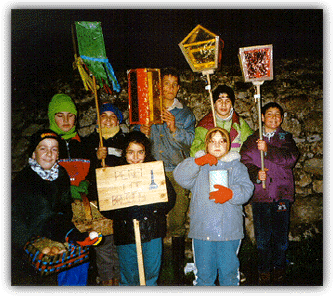Unos días antes de cantar las marzas nos reunimos todos los niños y niñas del pueblo para preparar la fiesta. Lo que más nos cuesta es hacer los farolillos: construimos un cubo de madera, le clavamos por abajo un palo, para poder agarrarlo bien; dejamos la parte de arriba abierta y dentro clavamos una vela; por último, abrimos agujeros en las paredes del cubo y las forramos con papel de colores, cada cara de un color. Luego preparamos el resto de las cosas: una cesta para llevar los huevos que nos dan la gente, la hucha para el dinero (con un bote de colacao al que hacemos una raja en la tapa) y un cartel. Para hacer el cartel vamos a buscar un trozo de madera cuadrado no muy gordo ni muy grande y ponemos la peña que somos, después clavamos el palo para cogerlo. Algunos chavales llevan candiles. El día de las marzas por la noche salimos todos juntos y vamos llamando de casa en casa. Preguntamos "¿canta-mos, rezamos o nos vamos?". En unas nos mandan cantar y en otras, si ha fallecido algún familiar hace poco nos mandan rezar, y así hasta que acabamos todas las casas del pueblo. Vamos llenando la cesta con huevos, chorizo, dinero, etc. Al día siguiente hacemos recuento de lo que hemos sacado y a la semana siguiente quedamos con la madre de cualquier chaval para ir al supermercado a comprar las cosas necesarias para la fiesta. Ese día cenamos todos los que cantamos las marzas y después jugamos; si sobra algo lo dejamos para el día siguiente para comer. He puesto ahora tres canciones de marzas: 1ª canción:"Canción de los Sacramentos" incorpórate en la cama si les quieres escuchar: Primero es el bautismo, ya sé que está bautizada, que te bautizó el cura para ser buena cristiana. Segundo es la confirmación, ya sé que está confirmada que te confirmó el obispo para ser buena cristiana. Tercero es la penitencia y esta es la que me echan a mí. El hablar contigo a solas no lo puedo conseguir. Cuarto es la comunión, ya sé que está confesada que te confesó el cura para ser mi enamorada Quinto es la extremaunción: de extremos a extremo te quiero, ni de día ni de noche en pensar en ti no duermo Sexto es el orden y yo cura no he de ser, en los libros de la vida toda mi vida es tu bien Séptimo es el matrimonio y es el que vengo a buscar y aunque tus padres ni quieran contigo me he de casar. 2ª Canción: a la puerta de tu casa si nos quieres escuchar Marzo florido seas bienvenido, seas bienvenido Con el mucho pan, con el poco vino, con el poco vino Traemos un burro cargado de aceite, cargado de aceite Para freír los huevos que nos dé la gente, que nos dé la gente ¡Ay qué cuchillito veo relumbrar, veo relumbrar! ¡Ay qué tajadita nos van a sacar, nos van a sacar! Y eran los pequeños y eran los mayores, y eran los mayores Y para [aquí se dice el nombre] un ramo de flores, un ramo de flores. 3ª canción Y las chicas bonitas sacan los tiestos a los balcones Venimos visitando a los habitantes de todo el pueblo Estas viejas costumbres nos las dejaron nuestros abuelos A cantar, a cantar, con amor, con amor, los marceros llaman a tu puerta A cantar, a cantar, con amor, con amor, recogemos duros y pesetas, chorizos y huevos, tocino y jamón y el porrón