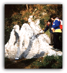 barro a lo largo de miles de años. En sus aguas observamos "Pulgas de agua dulce" y el musgo de las fuentes. ![]() Surco Mientras mirábamos el manantial nos dimos cuenta de que a su lado había un lapiaz, formado por aguas salvajes (sin cauce); estas aguas hacen surcos en la roca, la roca dura aunque calcárea, es la única soluble con agua y CO2.
