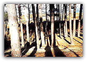 gravábamos con la cámara. ![]() Surcos Las cárcavas con el paso del tiempo se van haciendo más grandes y profundas. Son de roca heterogénea, en su mayor parte contienen materiales blandos y arcillosos. Todo ello está favorecido por los pinos, que actuando sobre las plantas, impiden su papel protector del suelo. En un acantilado al lado de las cárcavas encontramos rocas calizas con incrustaciones de sílice. Por último en esta zona, vemos una dolina. Una dolina es una depresión a modo de embudo de boca redonda u ovalada, más ancha que profunda y sin desagüe visible. Abundan en las mesetas calizas y suele tener en su fondo arcilla de calcificación y derribos de sus paredes. ![]() Vista del fantástico pinar Y allí, junto a los pinos y la dolina terminó nuestro drama.
