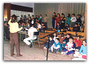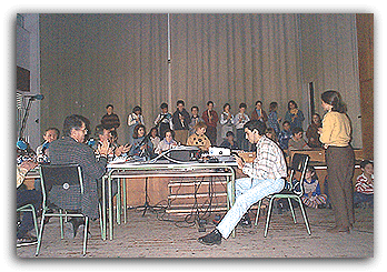 ![]() Los alumnos cantando Los villancicos, acompañados de diversos instrumentos musicales fueron: