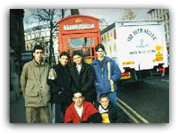 dejaron la mañana libre para dar el último paseo por Salisbury. ![]() Alumnos delante de la típica cabina de teléfono inglesa Este mismo día, embarcamos en el Ferry, y a las siete y media, comenzamos el viaje de vuelta hacia Bilbao. El viaje se hizo un poco largo, pero aprovechamos, y, esa misma noche, fuimos a ver el espectáculo que había en la discoteca. Después, bailamos hasta altas horas de la madrugada y, seguidamente, nos fuimos a la cama. Al día siguiente, nos levantamos bastante tarde, y fuimos a las tiendas del Ferry a hacer las últimas compras; cenamos y volvimos a la discoteca. Allí, se celebraba un concurso, pero no entendimos mucho ya que hablaban en inglés. Al acabar el concurso, comenzamos a bailar hasta que no pudimos más y nos fuimos a la cama. A las seis de la mañana nos despertamos y desembarcamos en el puerto de Santiurce. A las once y media llegamos a Corrales y, así, finalizó nuestra excursión a Inglaterra.