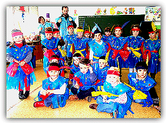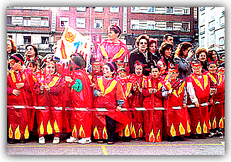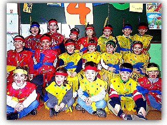 Cada curso fue disfrazado de una cosa diferente. Los de 1º de primaria se disfrazaron de indios, los de 2º de primaria fueron de vacas, los de 3º de primaria se disfrazaron de diablos, y los de 4º, 5º y 6º de primaria nos disfrazamos de lo que quisimos.