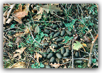 Excrementos de ciervo común (Cervus elaphus). Comprobamos de cerca cómo el embalse ha destruido muchos de los ecosistemas naturales. Los de la Sierra espiamos a los del embalse con el catalejo que Benito, otro de los monitores, había llevado; también vimos cuatro ciervos, que en esta región alcanzan tamaños descomunales. Comprobamos los efectos de los incendios forestales... Volvimos a las 14 horas, hambrientos y cansados, menos mal