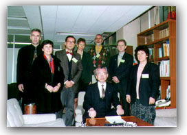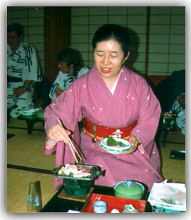 Fotografía de las delegaciones de España, Francia e Italia con el superintendente de Educación de Prefectura de Ishikawa, Señor Morio Teranishi El programa en el que he participado está dirigido a Profesorado de Secundaria de todo el mundo. En 1997 se han organizado cuatro grupos, con un total de 279 profesores, de los cinco continentes. El requisito fundamental era ser profesor o profesora de Historia, de Geografía o de Arte en Secundaria. En el IV estábamos un total de 73 profesores representando a 19 países; de España acudimos un profesor de Instituto de Las Palmas, un profesor de Barcelona, una profesora de un centro privado de Madrid y yo desde Cantabria. Una vez seleccionada por la Embajada para participar en el viaje, tramité la licencia en mi Centro y se me concedió permiso sin sueldo para acudir a Japón. A partir de ese momento comenzaron los preparativos y los nervios de la partida. Todo el programa era sugerente: visitar el país, conocer su cultura milenaria, sus obras de Arte tantas veces recogidas en los libros de Historia; introducirme en su sistema educativo visitando centros de los distintos niveles de enseñanza, asistir a conferencias con profesores reconocidos para completar la visión y además disfrutar de la hospitalidad de una familia durante mi estancia... Las expectativas se han visto colmadas en exceso porque la experiencia ha sido formidable, humana y profesionalmente. La organización de nuestra estancia en el país ha sido perfecta y un grupo numeroso de personas hemos disfrutado de todas las actividades sin "pillarles en un fuera de juego". Un equipo humano de la Fundación, del Ministerio de Educación y del Ministerio de Asuntos Exteriores, así como de las Prefecturas que nos acogieron, nos ha ayudado para facilitar nuestra visita, ya que una dificultad muy importante es el idioma y aunque el Inglés era utilizado en las intervenciones, en muchas ocasiones precisábamos de la ayuda de guías e interpretes, atentos a echarnos una mano en todo momento. La comodidad en hoteles y desplazamientos ha aliviado el intenso programa de actividades diarias organizadas para aprovechar al máximo nuestra presencia en el país. Las comidas en lugares escogidos, atendiendo gustos más internacionales u ofreciendo su cuidada gastronomía a base de sushis, tempuras, sashimis o sukiyakis, nos han permitido degustar nuevos sabores y texturas.