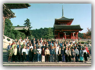profesores participantes ante el templo Kiyomizu de Kioto "domo arigato gozaimasu".