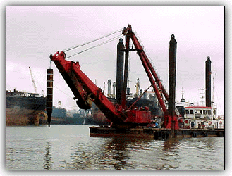 de la draga que, con un peso que cae de golpe, rompe todo lo acumulado en