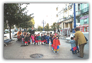 Nuestros alumnos de 3 añitos salen por primera vez fuera del centro con motivo de estar realizando las actividades del Tema de Trabajo "La Calle".