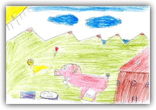 daba de comer. Un día los animales se escaparon y eran un cerdo,