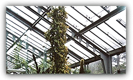 Las zonas secas se caracterizan por fuertes oscilaciones térmicas entre el día y la noche, escasa humedad y lluvia. Las plantas suculentas, aprovechan el rocío de la noche. Cerca de la jardinería sur, junto a las ventanas, se cultivan plantas africanas que nos parecieron llamativas. Las más raras, las "plantas piedras", tienen formas redondeadas y colores poco llamativos. ![]() Foto de los Lithops "plantas piedra" Los tejidos de los cactus son elásticos, capaces de contraerse y dilatarse según la cantidad de agua almacenada. ![]() Foto de cactáceas En esta sección se cultivan plantas muy importantes, las "coníferas de hoja de palmera". El departamento subtropical En este tipo de climas, como es propio de determinadas partes del litoral mediterráneo, es frecuente que últimamente se cultiven, con aclimatación previa, plantas tropicales como el mango, la papaya, la piña. La principal característica de esta zona es la total ausencia de heladas, aunque existan diferencias entre el invierno y el verano, tanto en las temperaturas como en las lluvias. También hay plantadas en esta zona del invernadero, plantas de