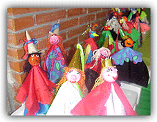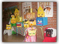 que fue muy divertida. ![]() Estas son las máscaras que creamos Además de todo lo anterior, durante los tres días funcionaron los talleres de expresión corporal en el aula de música así como el de máscaras, marionetas, de collares y el de maquillaje, en el que Inma, Aurora y Montse enseñaron a pintar y maquillar a los alumnos con la colaboración de una esteticien y una peluquera profesional. ![]() Alumnos que practicaron en el taller de maquillaje Esta Semana Cultural nos ha gustado mucho porque hemos participado en todas las actividades, nos entretuvimos mucho, las actuaciones fueron muy buenas y estaba todo muy bien organizado. ![]() Los leones hemos hecho estas máscaras con una caja de cartón y un poquito de imaginación. ¡Vamos a hacer títeres! Material que necesitas: Plastilina para la cabeza; Lanas para el pelo; Telas para los trajes; Cartulinas, cartón...para los gorros. Forma de elaboración: Lo clavas todo en un palillo de pincho moruno y con tu imaginación ya puedes representar fantásticas historias de brujas, hadas...príncipes y princesas. ![]() Haz tus títeres. ¡Es fácil!