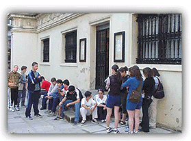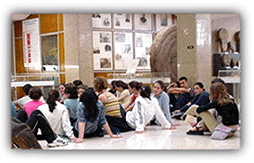 A continuación, visitamos el Museo de Bellas Artes. En ese momento, sólo estaban disponibles al público, las salas de las plantas 2ª y 3ª por estar las plantas baja y 1ª en preparación de una exposición sobre Picasso (láminas, grabados y cerámicas cedidas por Lucía Bosé). Los alumnos, además de recorrer las salas, han realizado bocetos de una o dos obras elegidas por ellos. Posteriormente, los alumnos harán un resumen sobre la obra del autor y reproducirán, en clase, esa obra elegida que ellos han escogido. La tercera visita concertada era el Museo de Prehistoria, en el que una persona del museo nos explicó, con detalle, todas las particularidades del contenido, pasando posteriormente a hacer un recorrido individual, fijándonos en los detalles de la exposición. ![]() En el Museo de Prehistoria | ||