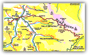 Los alumnos de 4º de ESO del IES Manuel Gutiérrez Aragón despidieron la enseñanza secundaria obligatoria con una excursión a Picos de Europa, con una travesía de dieciséis kilómetros entre el valle de de Polaciones y el de Liébana. Mapa de la travesía realizada por los alumnos. A la derecha el valle de Polaciones. El IES Manuel Gutiérrez Aragón organizó el pasado 31 de mayo la última de las actividades al aire libre del presente curso 2000-2001. En este caso los protagonistas fueron los alumnos de 4º de ESO y cuatro profesores que imparten clases en el mismo nivel. Para los alumnos de cuarto fue ésta una jornada especial, pues además de lo que suponía en sí misma la actividad también era la despedida de un curso y de un nivel educativo como es la ESO. Para muchos ésta era la última de las jornadas de convivencia, ya con el curso casi finalizado y con perspectivas de estar el año próximo en otro tipo de centro o simplemente preparados para afrontar la actividad laboral en cualquier sitio.