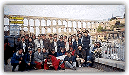 Miércoles 2, mayo: Segovia A las 8:00 de la mañana, para no perder la costumbre, empezamos con el ritual, vestirse, asearse y desayunar... Salimos hacia Segovia donde lo primero que vimos, debido a su tamaño, fue el Acueducto, pero ese no era nuestro destino. El destino era el Alcázar, donde estaban de fiesta, o algo así; una visita guiada y fugaz en la que por fin confirmamos una de las mayores dudas de la historia, señoras y señores. Pelayo, si Pelayo, el de la Reconquista era cántabro y además lebaniego. Las salas eran muy bonitas con unos techos que parecían auténticas joyas. A la salida del Alcázar nos tropezamos con un tal Iker Casillas,el futbolista, al que no tardamos en abordar. Acabado el acoso nos fuimos a comer a un centro comercial cerrado pero, por suerte, los recreativos estaban abiertos y alguna bocatería también. Acabada la comida fuimos fuera a pelarnos de frío. Retornando a lo que nos acontece, fuimos a la fabrica de vidrio, donde además de aprender cosas sobre la fabricación del vidrio y su historia, vimos una exposición muy bonita. Después fuimos a un gran jardín con unas fuentes enormes, sobre todo una que tenía una cantidad incontable de chorros de agua, y eso fue todo. Cambio de albergue y de ambiente, esta vez nos tocó una casa tan fea como grande, pero rápidamente la hicimos acogedora. Esta noche tocaban juegos, concursos y obras teatrales. Esa noche no será recordada por lo mucho que dormimos.