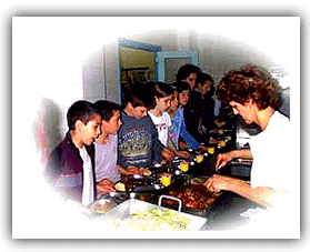 Nos levantábamos a las 8,00, supuestamente con música, digo supuestamente porque la ponían bajísima y casi no se oía nada. Había unas chicas que nos ayudaban a hacer las camas que también eran bastante simpáticas. Nos íbamos a duchar, nos vestíamos y a las 9,15 bajábamos a desayunar. A las 10,00 íbamos de marcha, luego había tiempo libre.