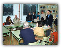 El IES José del Campo de Ampuero organizó diversos actos para festejar la llegada de las vacaciones de Navidad. Se hizo un concurso de Sociales, una conferencia matemática sobre el número PI, teatro, música y danza. Además, los chicos de Grado Medio de Mecanizados presentaron un pequeño Belén hecho por ellos con piezas de metal sobrantes de las prácticas. Ya van dos años desde que el IES José del Campo de Ampuero se decidiera a ofrecer a los alumnos (y también a los profesores) alguna alternativa para el último día de clase antes de las vacaciones, antes que estar por ahí dando vueltas y pasando frío hasta que aparecieran las notas y poder salir corriendo hasta la plaza del pueblo. ![]() Con la colaboración y participación activa de casi todos los profesores del Instituto se preparó para el día 21 de diciembre un programa para todos los gustos, de modo que se pudiera elegir lo que se quisiera hacer. Tempranito por la mañana comenzaron las finales de futbito entre equipos de todos los niveles, pero esa noche cayó una helada terrible y no había quien jugara en el patio del Instituto, que era una pista de patinaje, así que todos nos fuimos al polideportivo municipal a jugar. Fue un poco desastre, porque muchos no se enteraron y se quedaron por ahí sin saber qué hacer. ![]() Casi al mismo tiempo empezaba en la Biblioteca del Instituto un concurso organizado por los profes del Departamento de Geografía e Historia. Desde semanas llevamos soportando la preparación de este concurso, aprendiendo capitales, geografía, clima y todo eso. Compitieron un montón de parejas (el concurso era entre parejas; Enrique nos hacía preguntas que contestábamos por turnos y ganaba, claro, el que más sabía o el que más suerte tenía). La final se celebró en el Salón de Actos, entre Mikel y Gerardo, de Segundo de ESO, y dos de Primero de Bachiller. Ganaron los de la ESO, después de un pequeño despiste de Enrique que confundió al contrario. El premio eran 5.000 pesetas en material para los primeros. ![]() Antes del concurso en el Salón de Actos, vino una profesora del Departamento de Matemáticas, Estadística y Computación de la Facultad de Ciencias de la Universidad de Cantabria, María José González, invitada por nuestro Departamento de Matemáticas, para dar a los de Primero y Segundo de Bachiller una conferencia sobre el número Pi, su historia y sus aplicaciones. ![]() Para acabar, hubo una serie de actuaciones preparadas por alumnos de ESO y alguno de Bachiller. Hubo baile con una bonita coreografía y chicas monas. Teatro con música en vivo, piezas de romances, de Arrabal, clásicos como el Auto de los Reyes Magos y otras muchas. Estuvo bien, divertido, pero se hizo un poco largo porque era ya la una y media y no veíamos la hora de ir a recoger las notas para marcharnos. Cerca de donde estábamos, en el edificio de Grado Medio, los chicos de Mecanizados presentaron un Belén que hicieron con piezas de hierro y aluminio, y virutas metálicas, todo a partir de material de desecho de las clases normales. Muy bonito, aunque sólo hay un rey mago. ![]() Lo bueno vino por la noche, porque los de Primero de Bachiller dieron