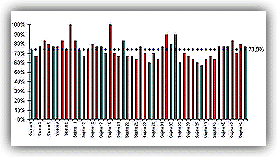 Esta gráfica representa a 50 personas de diferentes edades y sexos que han realizado un cuestionario para comprobar cómo reacciona la gente ante personas con mal aspecto. Como podemos observar en esta gráfica, el eje de ordenadas está representada por los sujetos que han respondido a nuestro cuestionario, y el de abscisas es el total de los puntos obtenidos por persona. Nuestro esfuerzo no ha merecido mucho la pena, porque no hemos podido confirmar nuestra hipótesis, pero al menos hemos conseguido apoyarla. ![]()