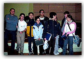 Pero centrémonos en pi, él también ha ido evolucionando a lo largo de la historia, y nos consta que nuestros antecesores también sentían curiosidad y se preocupaban por él. El antiguo Egipto hace una comparación de áreas casi iguales, los babilónicos mediante suma de fracciones se aproximan a pi, y en el Antiguo Testamento-550 a.c-dejan traslucir sus conocimientos acerca de él. Griegos como Arquímedes, hicieron afirmaciones y utilizaron métodos de aproximación con áreas de hexágonos y círculos, que aún se utiliza y que se conoce como método arquimediano. Durante los siglos XVI, XVII y XVIII, matemáticos conocidos como Newton, Descartes, Euler o Gauss, se hicieron cargo de esta incesable búsqueda por el hallazgo de una técnica mecánica que se acercara a pi. El producto infinito de Vieta fue bastante preciso. ![]() Grupo de alumnos en el lugar de la charla. Aún en el siglo XX y XXI se está produciendo una carrera por acercarse más a éste número, la famosa computadora ENIAC, fue capaz de determinar 2.037 decimales en tan sólo setenta horas, dígito que fue superado con creces en 1997, Canadá, que haciendo uso de una calculadora, se alcanzaron 51,5 billones en 29 horas. La rapidez de cálculo de esta cifra ha llegado al punto de convertirse en método de comprobación de la velocidad de un procesador.