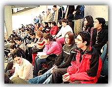 Comenzó el partido con las gradas llenas a rebosar de alumnos y algunos profesores. Aunque se tardó en marcar el primer gol, porque los profesores opusieron cierta resistencia, comenzaron a entrar los goles en la cancha del profesorado. Uno, dos, tres... y así hasta cinco. Por el contrario, los profesores marcaron un gol, el de la vergüenza. Bueno, a decir verdad, marcaron dos, pero uno en su propia portería. Hubo una decisón del árbitro bastante discutida.