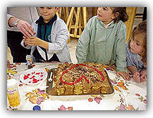 Celebrar la festividad del santo más romántico, San Valentín, puede hacerse comiendo bombones o regalando flores a la persona amada. Sin embargo, los alumnos de la clase La Rantera Rosa optaron por elaborar una deliciosa tarta con forma de corazón. ![]() Los alumnos de Educación Infantil de la clase de La Pantera Rosa celebraron el día de San Valentín en el Taller de Cocina elaborando una exquisita tarta de galletas, chocolate y natillas. ![]() La decoraron con un enorme corazón rojo de guindas confitadas. ![]() La hemos compartido con los otros compañeros de Educación Infantil y primero de Educación Primaria. Tú también puedes hacerla. Es muy sencillo y está tan rica que te chuparás los dedos. | ||