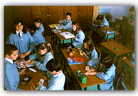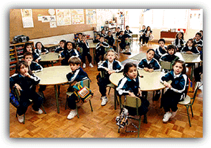 Además, disponemos de tres aulas muy bien equipadas: una de ellas es el aula de tecnología, en la que se realizan los proyectos, otra es el aula de informática, donde se realizan actividades, tanto curriculares como extraescolares donde hay 16 ordenadores todos ellos con conexión a Internet, y la tercera es el aula de plástica, donde se dan habitualmente las clases, con todo el material adecuado para el desarrollo de la asignatura. Para las actividades deportivas dentro del horario escolar, el Centro dispone de un gimnasio de grandes dimensiones, con abundante material deportivo. En el extenso patio del colegio, podemos realizar actividades deportivas, ya que tiene tres canchas de baloncesto, un campo de futbito, un campo de voleibol y otros espacios para diversas actividades, además de un jardín. ![]() Alumnos en el patio del colegio Nuestro Colegio colabora en Actividades Deportivas de iniciativa Municipal,