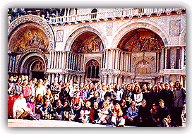 peculiar posición. Nuestro tercer día lo pasamos por completo en Florencia, la cuna del Renacimiento, la Atenas de Italia. Recorrimos los lugares más representativos acompañados de un guía; la Piazza de Santa Croce- donde descansa Miguel Ángel y otros muchos artistas- o la catedral florentina que desafiante, de mármol verde, blanco y rojo, es el corazón de la ciudad. Acompañándola, la torre del campanario y el baptisterio románico de San Juan. ![]() A pocos metros está la Plaza de la Signoria, donde se alza el almenado Palazzo Vechio y el museo de la escultura al aire libre. Repleta de gente, en su mayor parte turistas, y numerosas palomas que revoloteaban por allí, configuraban a Florencia un cierto desorden y una intensa vitalidad. Ahí se hallaba también una copia exacta del David de Miguel Ángel, y a continuación el sobrio Palacio de los Uffici, así llegamos a un mirador, con vistas al más famoso puente que atraviesa el río Arno, por haber permanecido ileso a inundaciones e incendios a lo largo de la historia. Durante las comidas, en grupos, organizábamos el tiempo libre para que diera de sí, y consultábamos los planos para seleccionar las visitas de interés. El día terminó en un mirador que se encontraba en un alto, al otro lado de la ciudad, y donde se podía admirar, desde una posición privilegiada, una magnífica vista de la ciudad al completo. Ya estaba anocheciendo y hacía mucho frío, pero seguíamos sacando fotos. Me entristeció tener que despedirme de esta ciudad que emanaba arte por todos sus poros. El día 25 de marzo alcanzamos la región del Venetto y empleamos nuestro tiempo en recorrer Padova, nos dividimos en grupos y quedamos a una hora con los profesores. Antes de nada fuimos a comer, hay que decir que la comida italiana está deliciosa tanto la pasta como las pizzas, las heladerías son muy numerosas y cuentan con una amplia gama de sabores ... ¡mmmmh...! Una amiga y yo no pudimos resistir la tentación y ¡no pasó un solo día en que no saboreáramos un helado italiano! Después recorrimos la zona de la Universidad, que es una de las más antiguas que existen, y tras visitar la Basílica de San Antonio mártir -que según cuenta la tradición concede novios- tuvimos que volver al autobús, que era ya como nuestra casa. Y nos preparamos para la visita que nos esperaba al día siguiente: Venecia. ![]() Y por fin llegó el día, llegamos a Venecia en una lancha. A medida que nos acercábamos, y con cuidado de que el sol no nos cegara, distinguíamos las construcciones más sobresalientes y nuestras ganas por llegar eran cada vez mayores. Recorrimos todo el muelle y atravesamos unos cuantos puentes llenos de historia, entre ellos el Puente de los Suspiros, donde algunos de mis compañeros no pudieron resistir la tentación de sacar la cámara, y es que miraras donde miraras había donde sacar una buena foto. Llegamos a la Piazzeta, que comunicaba el muelle con la Plaza de San Marcos. La Basílica es impresionante, si su arquitectura es deslumbrante, su interior aún más. Allí nos esperaba una guía, que nos describió y explicó muy bien todo lo que nos rodeaba, y entramos con ella a la Basílica. Al salir, nos dirigimos a una fábrica de Murano y asistimos a la fabricación de un caballito que esculpieron con una gran rapidez. Aprovechamos para comprar algún recuerdo y nos dejaron tiempo libre para descubrir Venecia por nuestra propia cuenta. Caminamos por las estrechas callejuelas y atravesamos puentes que se repartían a lo largo del Gran Canal. Es una ciudad alegre, sus gentes son muy abiertas y hay música por las calles. Los rayos de sol que conseguían relucir en los canales producían un brillo que los hacía parecer hilos de plata. Las góndolas fluyen en sentido de la corriente y los pirulíes que emergen dan un aspecto divertido y singular. Luego montamos todo el grupo en Vaporetto para acceder a determinadas zonas y contemplar los numerosos palacios ribereños. Antes de marchar compré una máscara de la comedia del arte, me costó mucho elegirla porque había tantas...y todas tan originales... Nuestro sexto día, en Verona. Lo primero de todo, conocer la casa de Julieta, estaba en un patio, la entrada era de arco, y las ventanas y el balcón, como había imaginado. Después de dividirnos en grupos, fuimos al anfiteatro La Arena y entramos a verlo por dentro. Estaban preparando una ópera, porque se celebra un importante festival cada año. Imaginé todo lleno de gente de esa época, animando las batallas, las fieras y demás espectáculos que podían haber tenido lugar. ![]() En Milán visitamos la catedral repleta de vidrieras que