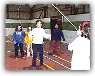 Lo que más nos gusta a casi todos son las manoplas y el futbolín y, por último, el ping pong. ![]() A las manoplas se juega dando a una bola con dos palas pegadas a un hierro. Hay que intentar meter la bola en una especie de portería, que defiende un chico o una chica. | ||
