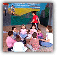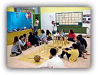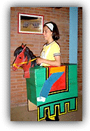 ![]() A la izquierda, Adriana con un caballo de cartón, a la derecha, distintos tipos de aros. Además invitamos a los niños del otro colegio de San Vicente