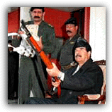 El presidente Bush Jr. Quiere deshacer la chapuza histórica que su padre organizó en Irak en 1991 por falta de visión política. La rebeldía iraquí a cumplir las resoluciones ''impuestas por papá'' constituye un motivo de irritación permanente, sobre todo si va unida a una campaña internacional aireada por la prensa de las calamidades que las sanciones producen entre los iraquíes. Estamos ante la prosperidad y ante la gran venganza. Una guerra fácil, victoriosa, que vacíe los arsenales norteamericanos acumulados durante la pasada década y deje sitio a las nuevas armas contratadas con los presupuestos militares aprobados por el presidente Bush para los próximos ejercicios, es garantía de optimismo económico, inversiones y desarrollo. ![]() Sadam Husseim Aunque la realidad suele ser otra las guerras siempre presentan ventajas en las mesas donde se planifican y en este caso, tendría el valor añadido de que extirparía ''las raíces del mal'' situados en Irak por la propaganda norteamericana. El tiburón del desierto Poco podrá hacer Irak para impedir la avalancha de muerte, desolación