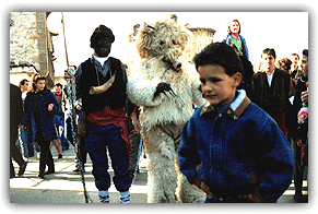 del pueblo. Abren el cortejo carnavalesco un par de danzarines, les siguen