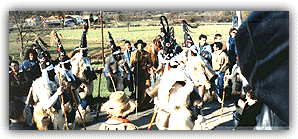 Calín (uno de los vecinos del pueblo). En un primer momento de la fiesta, los zarramacos se acercan a la raya, divisoria con el pueblo vecino, Molledo, en donde piden guerra o paz. Cumplen así el doble reto de jorricar (mover) mejor, con mayor gracia y más fuerte los campanos y sobre todo impedir que los contrarios pasen de ese límite, infracción que en la vida ordinaria supuso más de una muerte en tiempos pasados. ![]() Acercamiento a la raya divisoria. A continuación inician el pasacalles que se dirige al interior