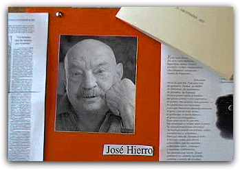 Homenaje a Jose Hierro Con motivo de la desaparición del poeta José Hierro el pasado mes de diciembre, el instituto de San Vicente de la Barquera que lleva su nombre está organizando un homenaje que tendrá lugar en este mes de febrero. Hoy en esta sección contamos con una especial exposición de imágenes del artista que están en la biblioteca del instituto. Acompañan a las imágenes algunas frases del poeta. También desde otros centros educativos han querido sumarse a este homenaje.