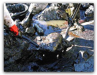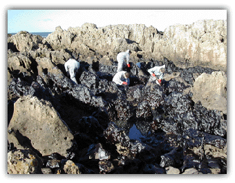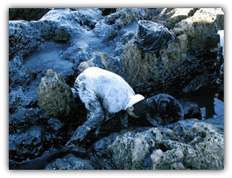 La gran marea negra que ha causado el Prestige llegó a San Vicente el día 7 de diciembre. Unas manchas enormes cubrieron las playas del Rosal y Merón. Más de 80 personas se han ofrecido para limpiar la segunda marea negra y más de veinte barcos han salido a por chapapote en vez de ir a por pescado y se han vuelto con muchas toneladas de fuel. Noelia, 6ºA ![]() Galicia está muy afectada por el chapapote del Prestige. También en San Vicente de la Barquera hay chapapote y, por lo que he averiguado, va a haber para cuatro o cinco años; y en veinte años no habrá marisco. Yo ayudé, pero cuando me metí por las rocas encontré tanto fuel pegado a las rocas, que rompí cuatro pares de guantes. Hice muchas cosas: até bolsas con fuel dentro, corté cuerdas, pasé bolsas, y cogí fuel entre las rocas. El sábado siguiente ya no había. Esperemos que no haya más nunca. Hay gente que coge su barco para quitar una mancha gigante que puede venir. Pablo Arroyo, 4ºB