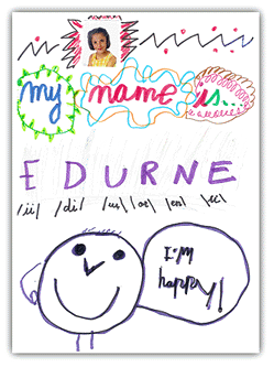 Dibujos elaborados en clase de inglés. En ellos se puede leer