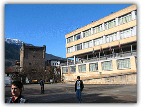 de los Picos de Europa El instituto Jesús de Monasterio de Potes está enclavado en un sitio privilegiado, pues desde sus patios y jardines se pueden contemplar los Picos de Europa, la Torre del Infantado, el Monte de la Viorna