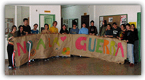 Soy alumna del IES Valle del Saja y me he encerrado en el centro junto con unos compañeros para pasar aquí el fin de semana y demostrar con esto nuestra negativa absoluta a cualquier tipo de violencia, nuestro no rotundo a la guerra que George W. Bush tiene planificada contra Irak.   Posiblemente, no podemos detener el ataque, pues nuestra voz llega a pocos oídos, somos el pueblo pero nadie cuenta con nosotros; sin embargo, sí podemos dejar patente que nosotros, unidos a la voz de una mayoría, no estamos de acuerdo con que el Gobierno de este país apoye esta guerra, absurda como todas. Las pruebas que Powel mostró hace unos días no son más