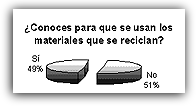 Gráfica 15: conocimiento de los usos de los materiales reciclables Este es el gráfico más equitativo, pero con una ligera tendencia al desconocimiento de qué ocurre con los materiales que se pueden reciclar.