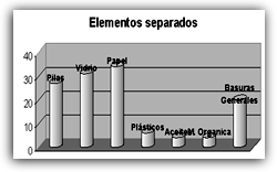 Gráfico 2: elementos que se separan En este gráfico, el eje de la y representa el número de personas que separan diferentes elementos de los residuos que generan.