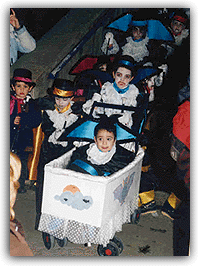 niños de la comparsa, una vez elegido el disfraz, las telas y demás