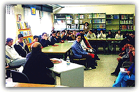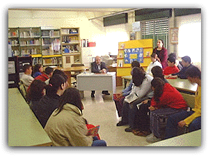 Según sus palabras el quería hacer una novela de aventuras, tipo Robinson Crusoe plagiando los nombres de los protagonista del barco negrero "los marineros" haciendo una historia totalmente de aventuras. Nos contó como era la vida en la posguerra intentando acercarnos a nuestro ancestros que sufrieron dicha guerra, explicándonos que la guerra que sufre Irak es por intereses económicos como todas ellas. También nos acerco a sus otros libros publicados, nos contó que es una novela que esta basada en un personaje Misson que creo una republica Libertaria en la isla de Madagascar en el siglo XVIII. Es una novela de aventuras donde se describe la trata de negros y también aparecen salvajes antropófagos, la navegación por un río africano lleno de cocodrilos y hipopótamos, luchas en el mar, una tormenta marítima y la aventura de los protagonistas perdidos en una barca en el medio del mar, todo eso hace que la novela sea muy entretenida. Las profesoras de Lengua y Literatura presentes coincidieron en lo entrañable que resultó en encuentro, y se manifestaron satisfechas con la participación de los alumnos. Finalmente, nuestro invitado tuvo la gentileza de firmar ejemplares de sus dos novelas a los alumnos de 2º y 3º de la ESO. La experiencia resultó muy grata.