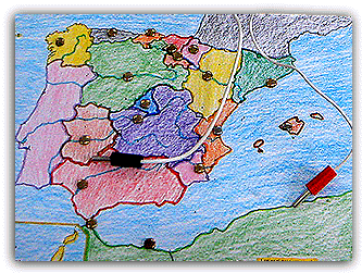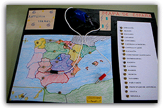 Lección de Geografía Unas cartulinas, chinchetas, palillos, plastilina, pilas, cables y ya tenemos un mapa de España. Esto es en lo que han trabajado los alumnos de 6º curso del CP Quirós para saber dónde situar las ciudades, las montañas, los ríos, los mares de la geografía española. ![]() España en plastilina ![]() Demuestra tus conocimientos ![]() Mapa de España ![]() Autonomías ![]() Conecta y aprende | ||