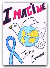 (3º A). Alumnas de 3º A del En el IES José del Campo, promovido por el departamento de Inglés, se ha celebrado un concurso para poner imágenes a la canción "Imagine" de John Lennon, que figuraba como música de fondo en el número de Febrero de Red-Acción. In the IES José del Campo there was a competition. Estas son las cinco láminas seleccionadas por los propios alumnos de 3º de ESO.