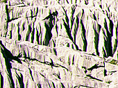 Impresiona en lo alto una bandada de buitres. Su envergadura nos resulta realmente sorprendente. Javi nos cuenta detalles curiosos sobre estos animales. Bajando hacia la playa nos detenemos a contemplar unos lapiaces. ¿A que suena a instrumento de dibujo? Pero no. Los lapiaces o lenares son formas cársticas de pequeño tamaño sobre la roca desnuda. Consisten en profundas estrías, hoyos y cavidades irregulares separadas por crestas agudas y con frecuencia cortantes. El agua de lluvia es el agente externo que, goteando, produce estos curiosos dibujos sobre la roca virgen. Las cuatro gotas que han caído sobre el camino han sido suficientes para que ahora todo se nos muestre embarrado. Y eso incluye, por supuesto. nuestras botas y pantalones. Así que la bajada a la playa tiene algo de tobogán. Ya en la playa nos espera una trilogía de descubrimientos. Simplemente os los enumeramos si no os importa: