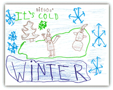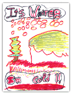 Dibujos elaborados en clase de inglés. En ellos se puede leer It's cold ( hace frío) y winter ( invierno). ![]()