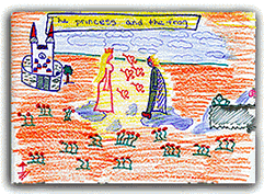 Once upon a time there was a castle who belonged to a serious KING . He had got a daughter a spoilt PRINCESS. She was crying in the garden, sadly, because her father didn´t let her go to the nearest "disco-dance". Suddenly a clever FROG appeared the help her. -"Give me a kiss and I´ll go to the disco with you". The frog became a handsome PRINCE and the lived happily for the rest of their days dancing without stopping!!