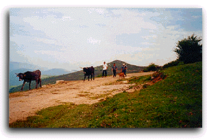 se conservan en esta zona está la 'Pasá'. La 'Pasá de Carmona' es uno de los acontecimientos más importantes del panorama de esta comarca cántabra. En ella se dan cita todos los años unos buenos ejemplares de ganado tudanco. Unos días antes de la pasá todos los ganaderos suben a Sejos y bajan el ganado hasta los pueblos donde estarán unos días antes de que llegue el día de la 'Pasá'. ![]() Ganaderos bajando sus vacas de Sejos. Días antes del acontecimiento los ganaderos van reuniendo sus reses y aproximándolas al invernal que tienen más cerca. Mientras estos ganaderos reúnen sus reses, los organizadores del evento van a buscar los celemines a Cieza para que los luzcan junto con las rosetas en el desfile. Ya el día de la 'Pasá', madrugando mucho, los ganaderos suben a meter las vacas al invernal donde a continuación se les pondrán los campanos y las rosetas y se llevarán al prado "La Marranera" donde se acordó anteriormente llevarlas. Una vez juntadas todas las vacas se reúnen todos los ganaderos y los que no son ganaderos y se come en el mismo prado donde están las vacas. Después de comer y echar unos tragos de vino se comentan asuntos entre ganaderos esperando a que llegue la hora. A eso de las tres y media se empiezan a seleccionar las vacas según la puntuación obtenida. Una vez llegadas las cuatro y media de la tarde, y después de haberse lanzado un cohete indicando que la carretera estaba totalmente cortada al tráfico, se da la salida de "La Marranera" saliendo por el siguiente orden: Bajan por la cambera las Lamas, entrando seguidamente al pueblo por el barrio del Lotero y dando una pequeña vuelta por el pueblo salen a la carretera por el puente de la Pesa. Una vez fuera, las vacas del pueblo se dirigen en dirección a San Pedro donde darán otra pequeña vuelta que las conducirá de nuevo en Carmona. ![]() Punta primera subiendo dirección a San Pedro. Una vez entrado el ganado en el pueblo se conducen al prado del Cantorral donde los ganaderos, y con la estimable ayuda de unos cuantos, se quitan los campanos y las rosetas y se conducen de nuevo al lugar donde se recogieron para venir a la 'Pasá'. Al final, gran cena donde los ganaderos son invitados a cenar las patatas con bacalao, la carne estofada y el té con orujo que como es tradición se cena todos los años. Después de la cena se celebra una romería. | ||