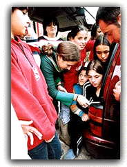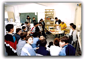 En las tres sesiones que se realizaron de prácticas, nos dividieron en dos grupos. Los chicos dieron clases de tareas del hogar en el laboratorio de química (especialmente de cocina). Aprendieron a realizar tres platos (endibias al roquefort, tomates rellenos y cóctel de melocotón), a calcular la lista de la compra... Mientras que las chicas dimos clases de mecánica en el garaje y aprendimos a mirar el aceite, cambiar las luces, distinguir las partes de un motor, cambiar las ruedas del coche...