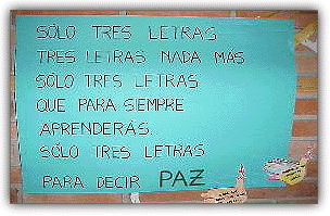 Sólo tres letras para decir PAZ El Colegio Mata Linares, como viene siendo habitual los últimos años, ha celebrado el Día de la Paz con diversas actividades (murales, dibujo, canciones...), pero la más llamativa y esperada es la foto colectiva en el patio. En ella participa todo el profesorado y el alumnado; los de Educación Primaria y Educación Infantil formaron una gran VELA POR LA PAZ. Es una original aportacion a ese deseo universal que todos los años pedimos y que nunca se nos concede. La comunidad educativa del CP Mata Linares seguirá insistiendo el año que viene y siempre. ![]() Por Allison y Silvia. Alumnas de 5ºB sus alas tan blancas y su cantar, es nuestra felicidad. se posó en el alféizar para que no la fueran a cazar. de niños se quedan sin familia a causa de las guerras. se posó en el alféizar para que no la fueran a cazar.