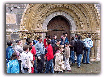 Los alumnos de primer ciclo de ESO del IES Santa Cruz de Castañeda han visitado el valle de Liébana, en la zona oriental de Cantabria. Este es el relato del viaje en el que, entre otras cosas, han acudido a las iglesias de Santa María de Lebeña y Piasca, y al pueblo de Potes. ![]() Alquitara típica de la zona convertida en fuente Los alumnos de Primer Ciclo de la ESO hemos ido de excursión a Liébana. ![]() Subiendo por el Desfiladero de la Hermida Después de atravesar el desfiladero de La Hermida, fuimos a la iglesia de Santa María de Lebeña, fundada en el año 925 y que es la más importante representación del estilo mozárabe en Cantabria. ![]() Lebeña: ¡¡Qué vienen¡¡ Esta iglesia tiene tres naves, con planta rectangular, los capiteles son de tipo corintio y los arcos son de herradura y tiene una torre que ha sido reconstruida. ![]() A la puerta de la iglesia de Santa María de Lebeña Después nos dirigimos a la iglesia de Piasca, que se comenzó a construir en el año 1174 y se terminó en el 1434, es una iglesia de estilo románico. ![]() Alumnos en la entrada de la iglesia románica de Piasca El elemento más característico de esta pequeña iglesia es el ventanal situado encima de la puerta del Oeste, es una ventana con tres arcos que tienen las imágenes de los apóstoles Pedro y Pablo y Santa María. ![]()